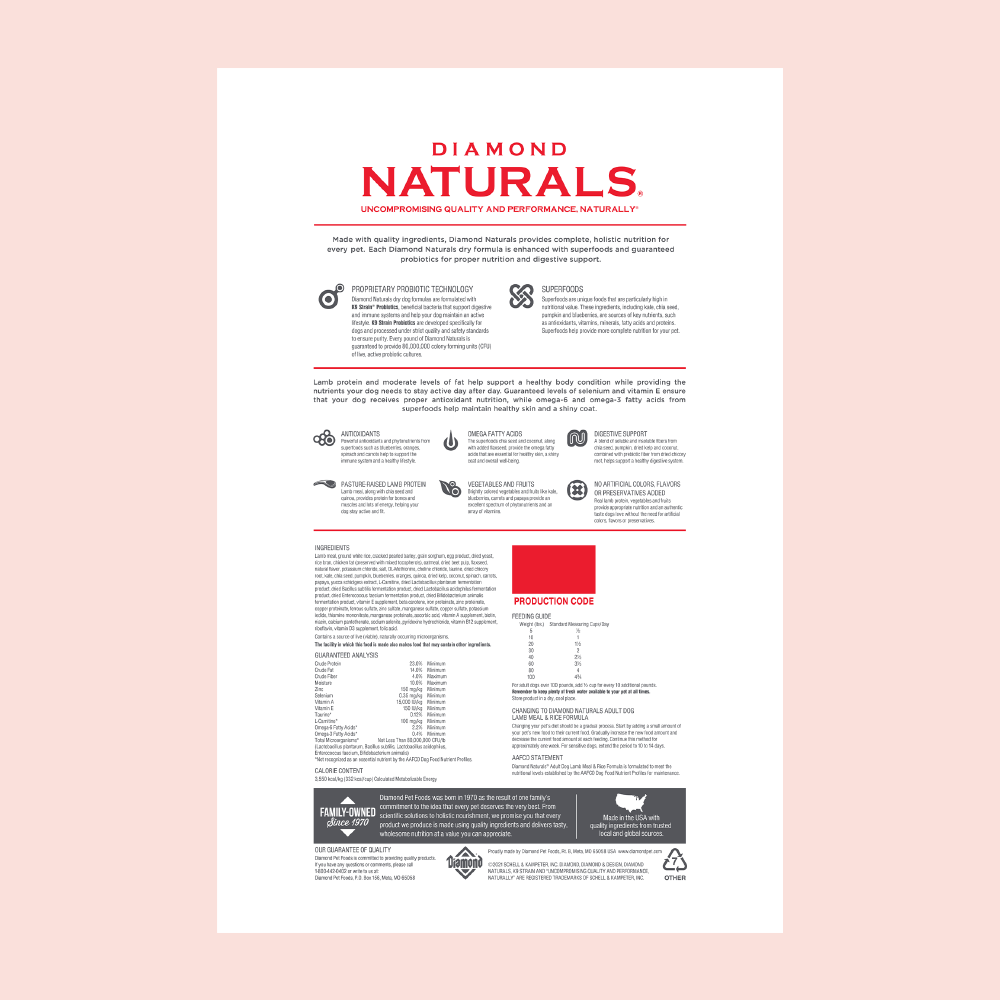 Diamond Naturals Lamb Meal & Rice Formula es ideal para perros de raza mediana y grande.